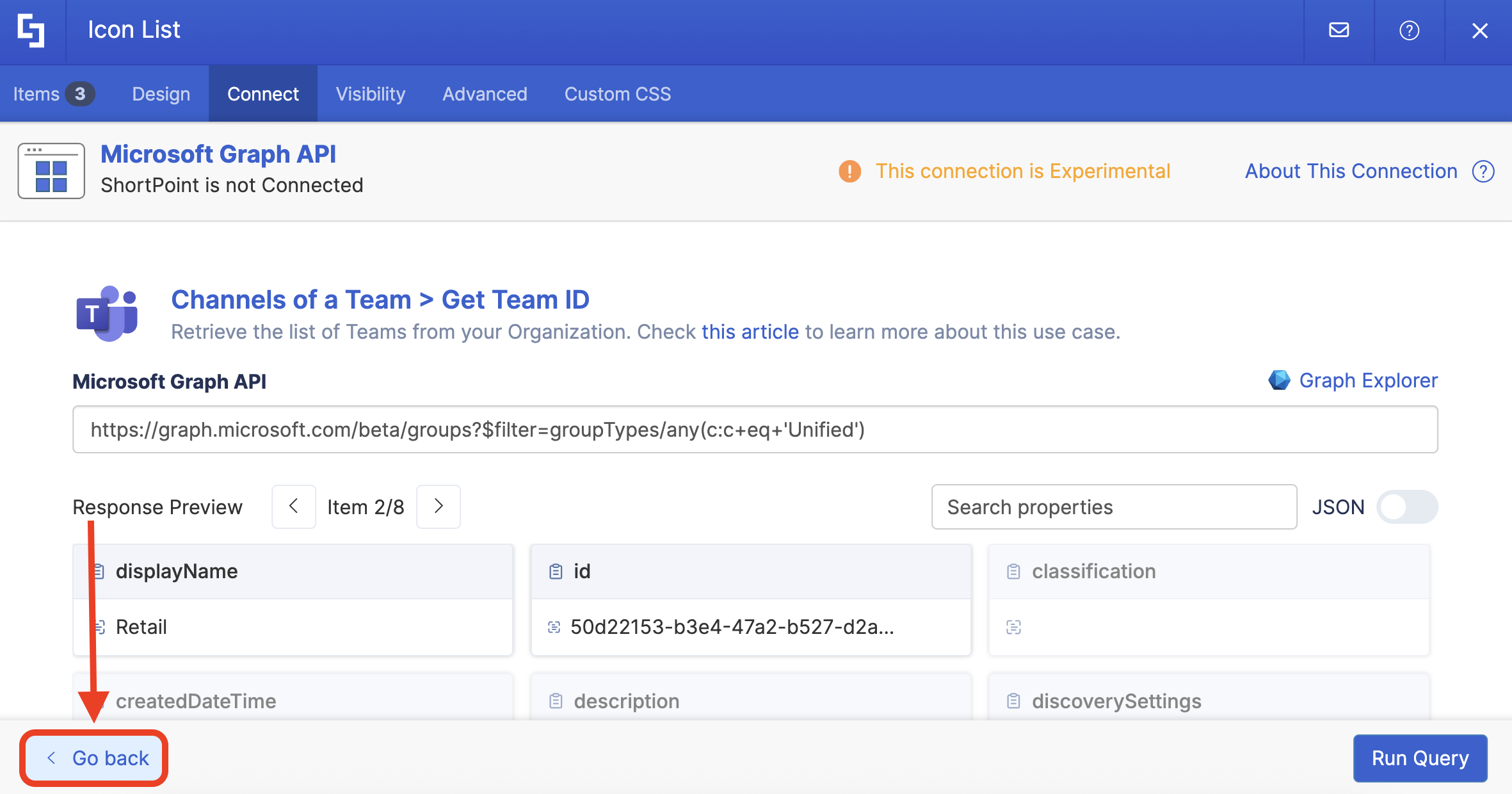 The ShortPoint Microsoft Graph API connection allows you to enter your own queries. Follow the steps below to learn how.