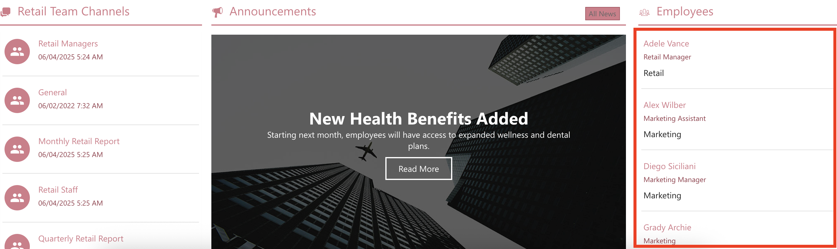 - Filter Users by Department - shows all members of a specific department. Go to How to Display Team Members From a Specific Department to learn more.