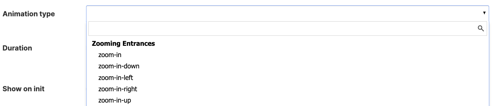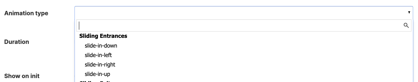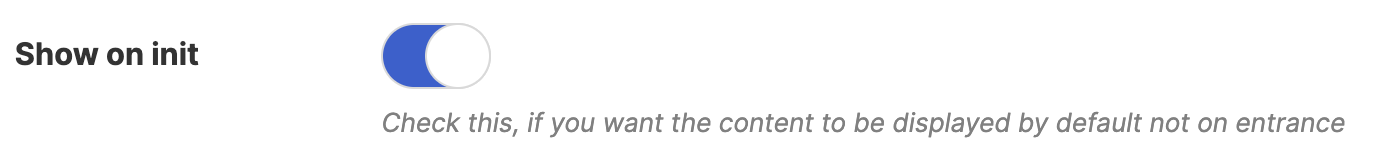 ![]() | Show on init | when enabled, it allows content to be displayed by default and not upon entrance. |